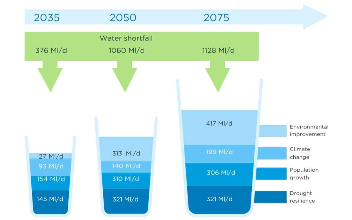 We forecast that we face a shortfall of over 1 billion litres of water every day for our customers in the next 50 years. That's enough to fill around 400 Olympic sized swimming pools.